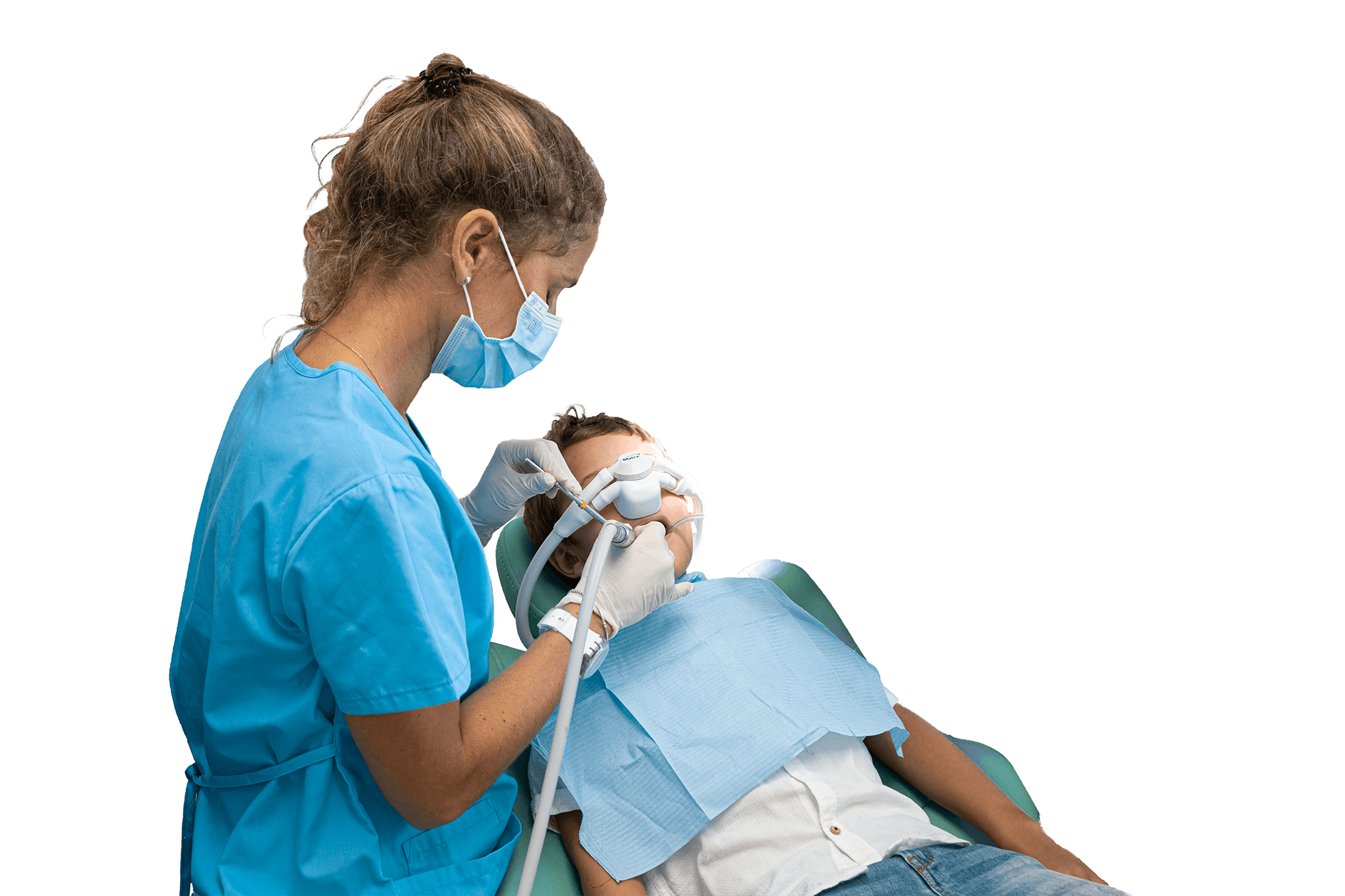 Conscious sedation by inhaling nitrous oxide and oxygen is the most frequently used sedation method in America and Europe. This technique, used for over 100 years, allows to minimize pain, relax the patient and facilitate dental treatment.